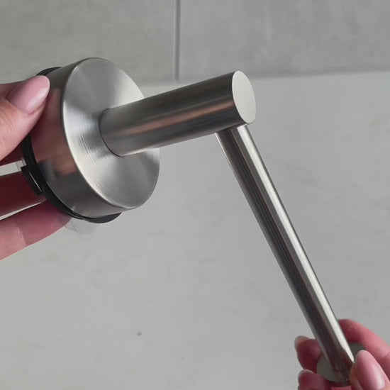 Tryck helt enkelt fast hållaren på rena och torra badrumsplattor och vrid låset på plats. Sugproppstekniken gör att den sitter stadigt utan behov av borrning eller skruvar.